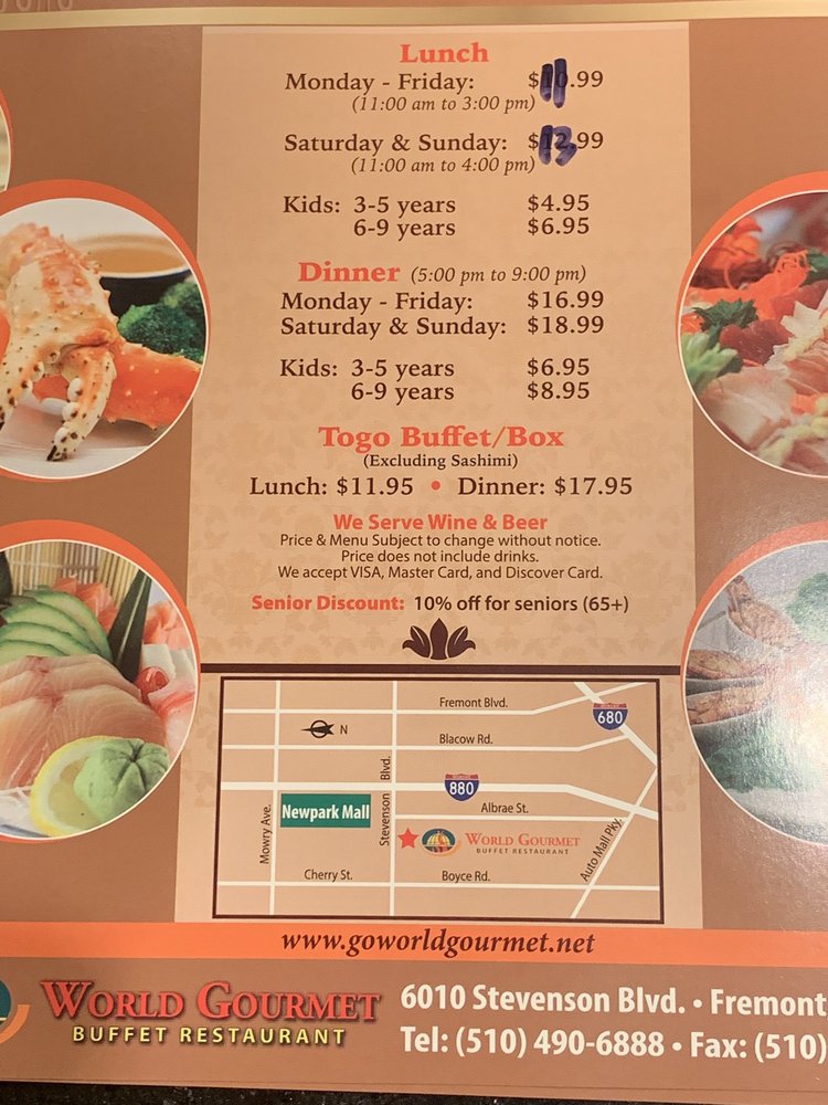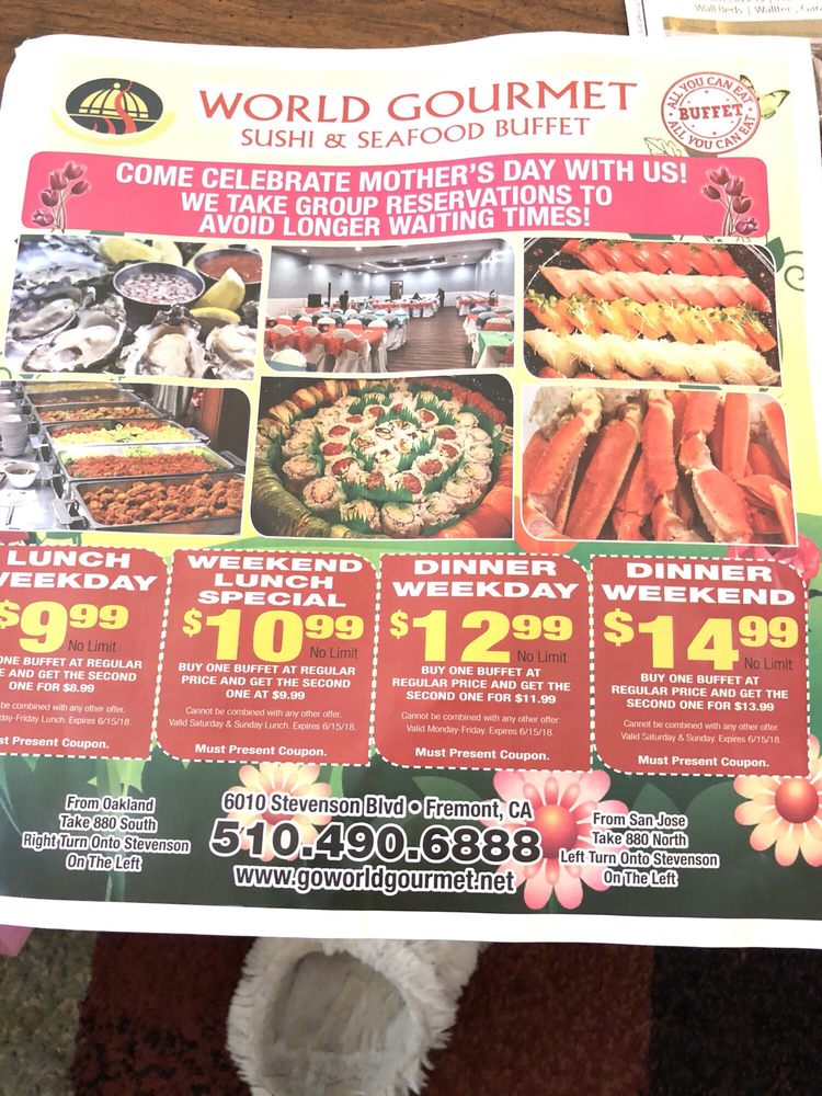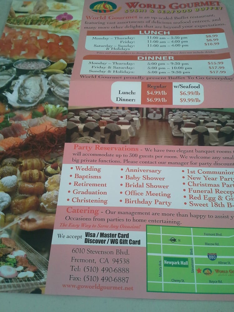 World Gourmet Buffet, located in Fremont, CA, offers a diverse menu with options ranging from sushi and Chinese dishes to seafood and barbecue. Customers have praised the variety of options available, with positive reviews mentioning the attentive staff and reasonable prices. The restaurant caters to a range of dietary preferences, including vegan and vegetarian options. The buffet also offers catering services, making it an ideal choice for hosting private events. With a welcoming atmosphere and a wide selection of food choices, World Gourmet Buffet is a great spot for casual dining with friends and family. The convenient location, ample parking, and free Wi-Fi add to the overall positive dining experience at this establishment.